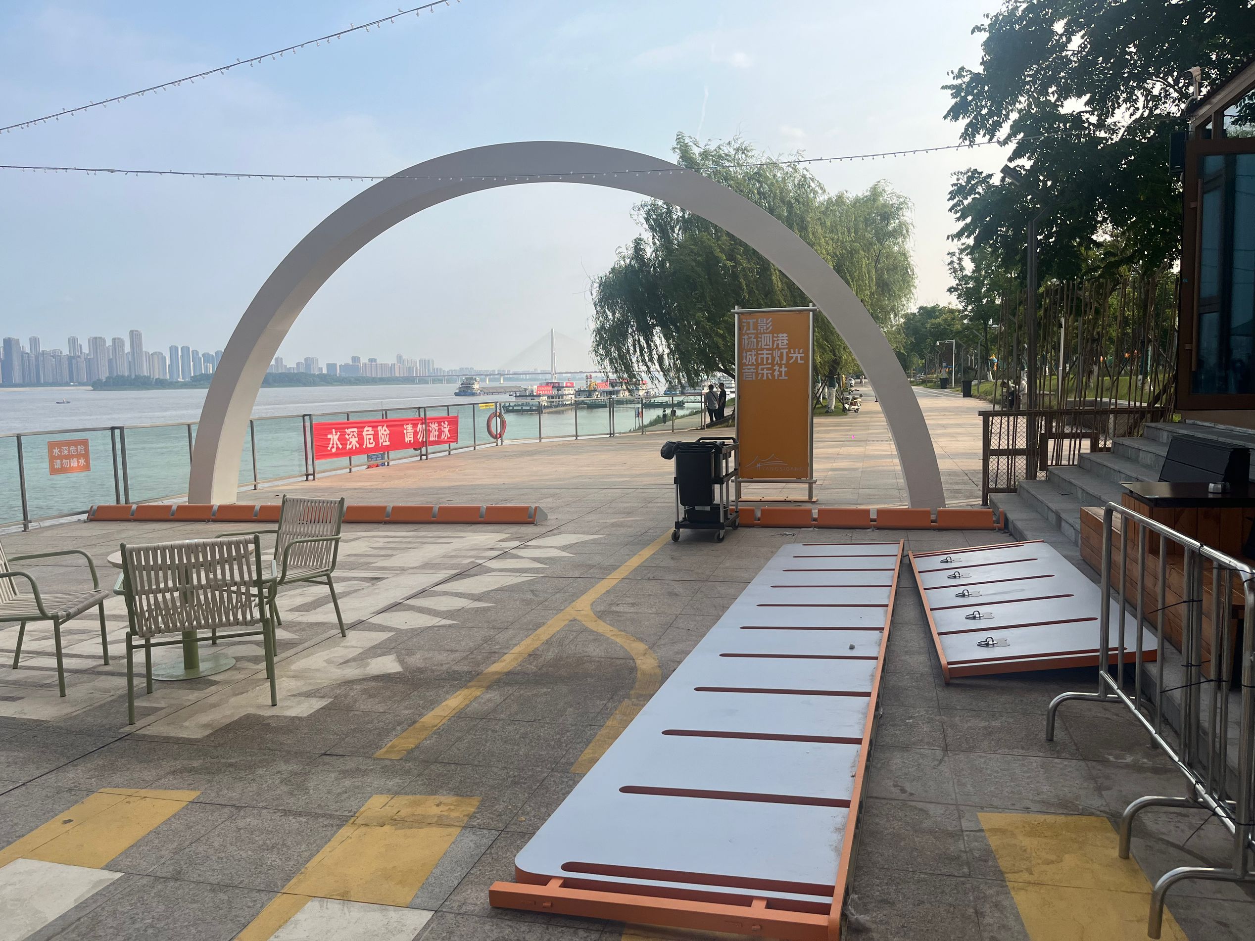 大皖新聞訊??近日,多位武漢市民投訴反映,武漢楊泗港長江大橋下網(wǎng)紅打卡地被商家占據(jù),“變相收費(fèi)”,引發(fā)爭議。5月28日,大皖新聞記者來到橋下看到,這里有一家“江影·楊泗港城市燈光音樂社”招牌,周圍設(shè)有圍擋和出入口。