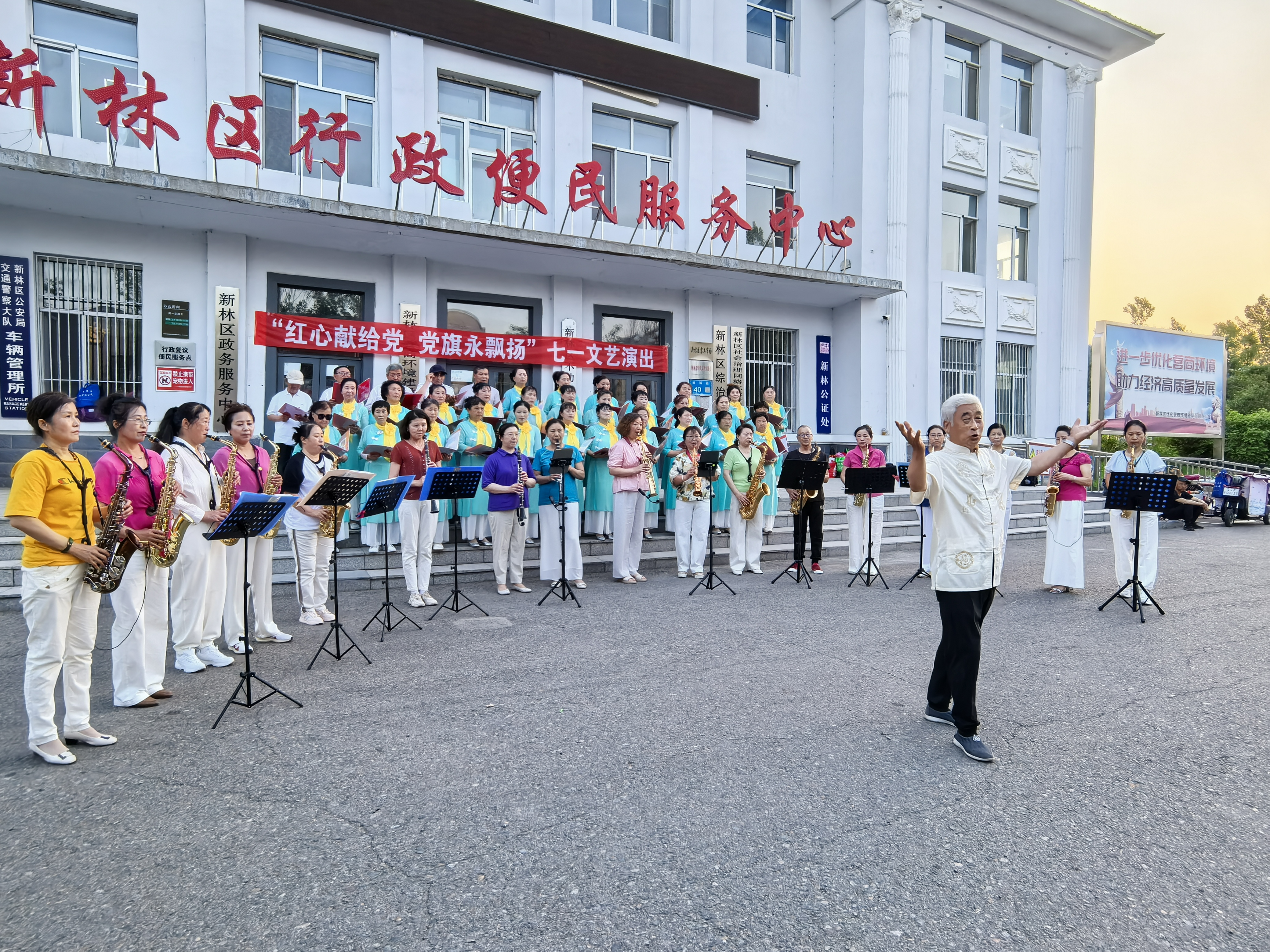 黑龍江網(wǎng)訊(鄒天瑤 記者 王可欣)為慶祝中國共產(chǎn)黨成立104周年,激發(fā)黨員群眾愛黨愛國情懷,凝聚干事創(chuàng)業(yè)力量,展現(xiàn)新時代基層群眾奮發(fā)向上、爭做新時代文明興安人的精神風貌,6月28日,新林鎮(zhèn)在行政便民服務中心門前舉辦“紅心獻給黨 黨旗永飄揚”“慶七一”文藝演出。
