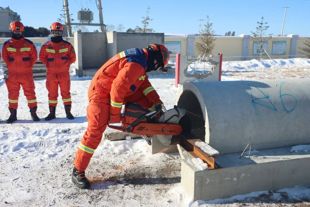 訓練場上,寒風凜冽、積雪覆蓋,支隊緊扣“模擬實戰(zhàn)、按情處置”的組訓模式,精準復刻震后建筑物坍塌、道路阻斷等復雜場景。教練員圍繞支撐加固、破拆清障、狹小空間救援、傷員轉(zhuǎn)運等核心科目,采取“推演+實操”“示范+糾錯”的方式,逐動作、逐環(huán)節(jié)進行細致指導。從液壓頂桿的精準支撐到無齒鋸的高效切割,從生命探測儀的靈敏捕捉到救援通道的科學開辟,每一個訓練科目都緊貼實戰(zhàn)需求,每一個操作細節(jié)都追求精益求精。